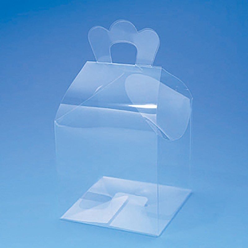 中身を見せる透明ボックスです。上部を組み立てると持ち手ができる可愛らしいバッグ型で、おしゃれなギフトボックスとしておすすめです。シールやリボンを組み合わせれば簡単にオリジナルラッピングが完成します。本体とフタが一体のワンタッチ組み立てタイプ。10枚入り