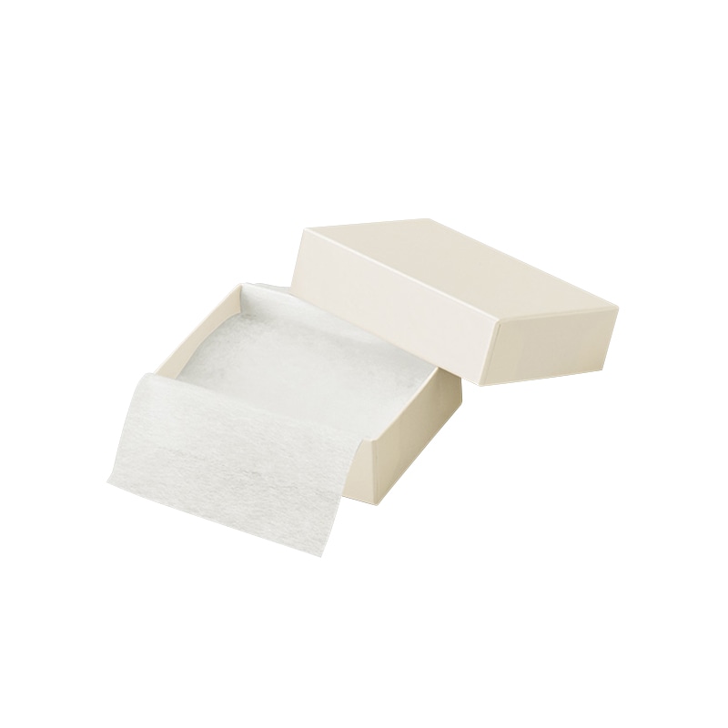 身・フタ・中枠の3種のパーツから組み立てる、フタをかぶせるタイプの白無地ボックスです。四方のサイドを折り込んで仕上げる組み立て式です。フタは表面に光沢を持たせており高級感があります。中枠付ですが、透明フィルムは貼ってありません。ハンカチなどに。10枚入り。