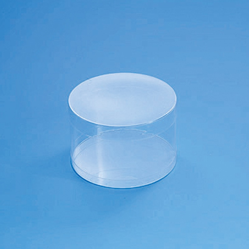 身・フタが別々で、でき合いのかぶせ式透明ボックスです。汎用性の高い円筒型は、お菓子の詰め合わせなどに。