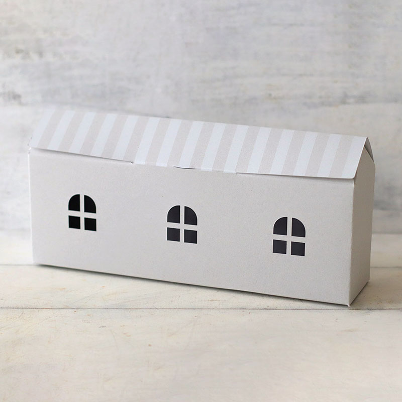 窓からチラッとお菓子が見えるおうち型のかわいいギフト箱です。焼菓子が5~7個や、スリムパウンドケーキ向けです。収納時は薄くてコンパクトなので場所をとりません。また上面がフルオープンになるので、お菓子の出し入れがとってもしやすいです。※原材料のロットごとに若干色目が異なることがございます。※印刷の都合上、若干の色むらが発生することがございますのでご了承ください。●入数:20枚