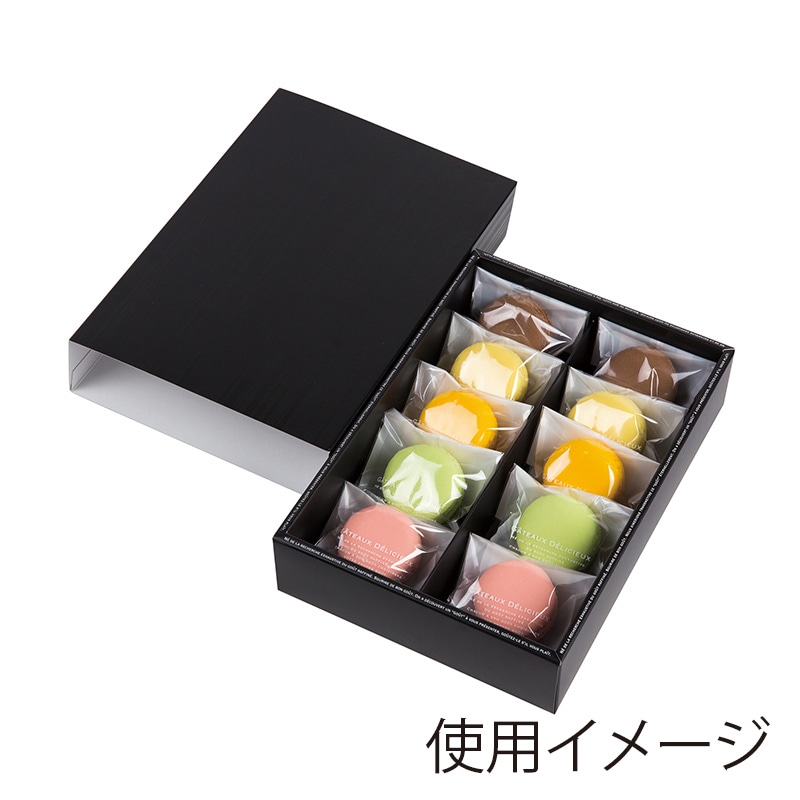 フロマージュやマカロンのギフトにピッタリなスリーブ型BOX。スリーブ・身・仕切・台座の4点仕様。●入数:200枚