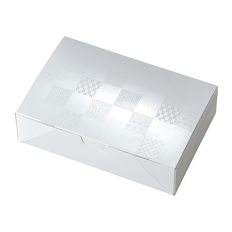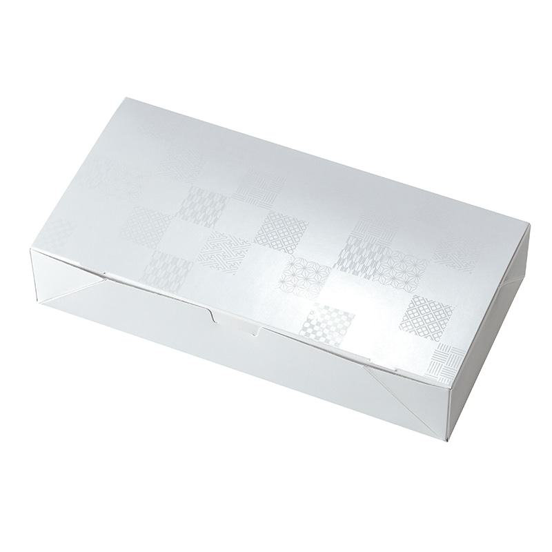 さりげなく光る和柄が白い箱でも高級感を演出します。本体一体型。●重量:36g/枚●入数:100枚