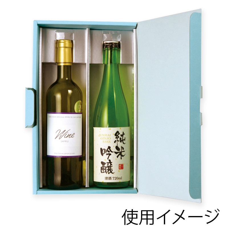 ヤマニパッケージ エスポア シャンパンワイン兼用箱 2本 K-1490 アクア 50枚/箱(ご注文単位1箱)【直送品】