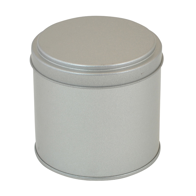 どんなイメージにも仕上げられるシンプルなシルバーの缶です