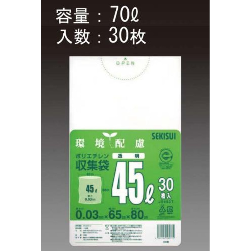●材質…LLDPE●容量…45L●サイズ(mm)…650×800×0.03●入数…30枚●透明袋●環境にやさしいプラスチックリサイクル原料を100%使用しています。●梱包サイズ:230×15×400●梱包重量770g