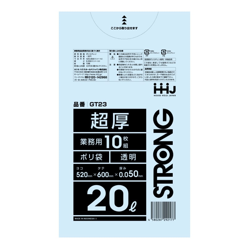 ハウスホールドジャパン 業務用ポリ袋 20L GL23 透明 10枚入 1冊(ご注文単位80冊)【直送品】