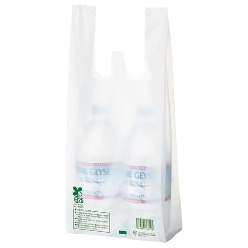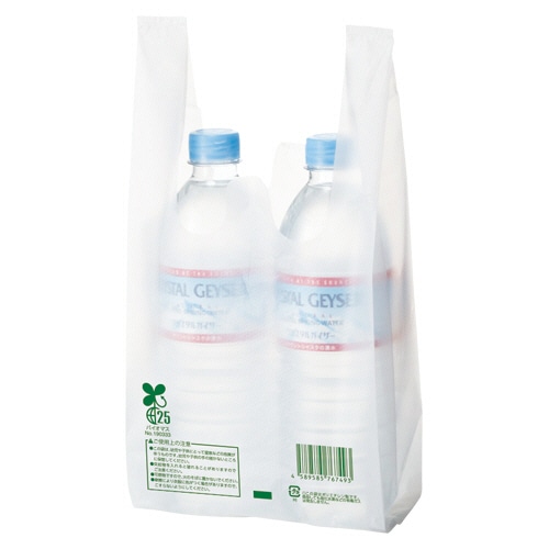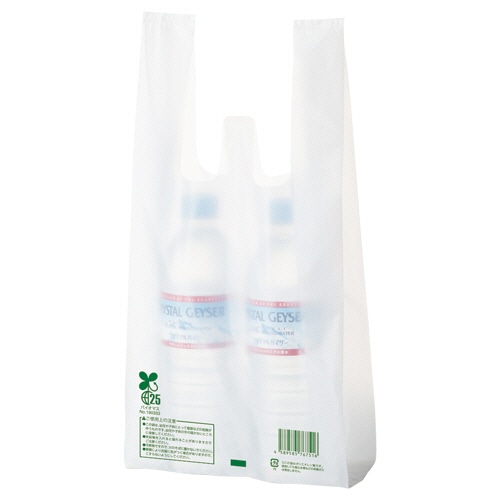【レジ袋有料化対象外】生物由来の有機資源を原料としたバイオマス成分を25%含んだレジ袋です。バイオマスマーク取得済みで、「プラスチック製買物袋有料化制度」の対象外とすることが可能です。主原料のサトウキビは、育成時に光合成をして大気中のCO2を吸収するため、石油化学由来の原料と比較すると大幅なCO2の削減に貢献します。買い物客に有償でお渡しすることも考慮し、本体1枚1枚にパッケージとは異なるJANコードを印字してあります。乳白色。食品衛生法規格基準適合商品です。東日本6号/西日本25号に準じた規格となりますが、サイズは若干異なりますのでご注意ください。●ハンガータイプ●表面エンボス加工あり●容量の目安:缶飲料350ml×2本●入数:100枚【印字内容】この袋はサトウキビ由来のバイオマス成分を25%含んだレジ袋です。「CO2排出量削減」や「石油資源の節約」に貢献しています。