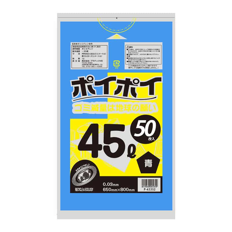 プラテック45 ゴミ袋 ポイポイ 青 0.03mm 45L 10枚入 P-652 1束(ご注文単位60束)【直送品】