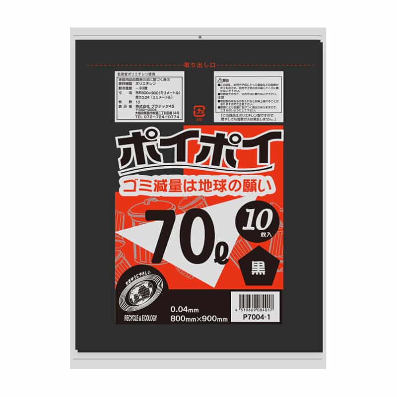 プラテック45 ゴミ袋 ポイポイ 黒 0.035mm 70L 10枚入 P7035-1 1束(ご注文単位40束)【直送品】