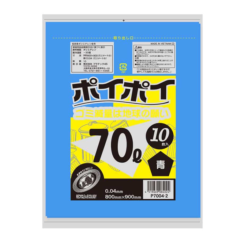 プラテック45 ゴミ袋 ポイポイ 青 0.035mm 70L 10枚入 P7035-2 1束(ご注文単位40束)【直送品】