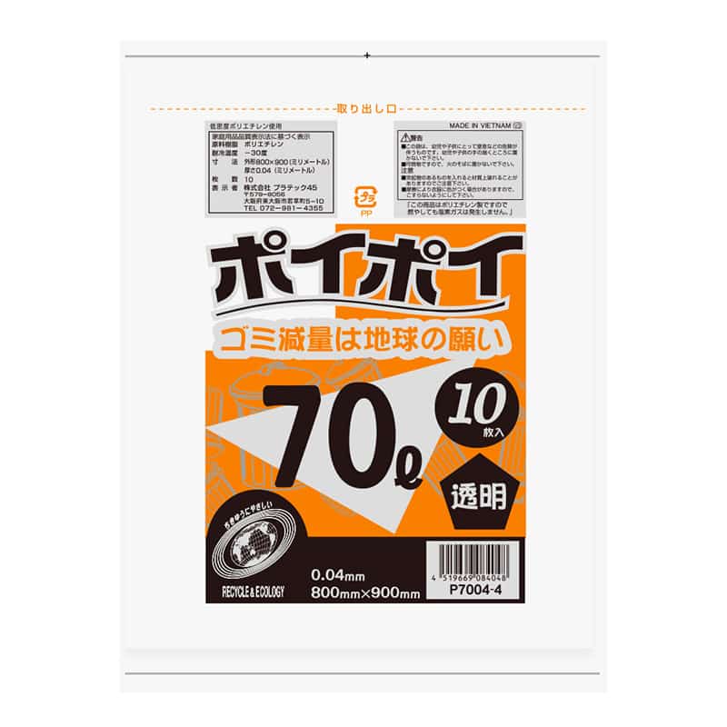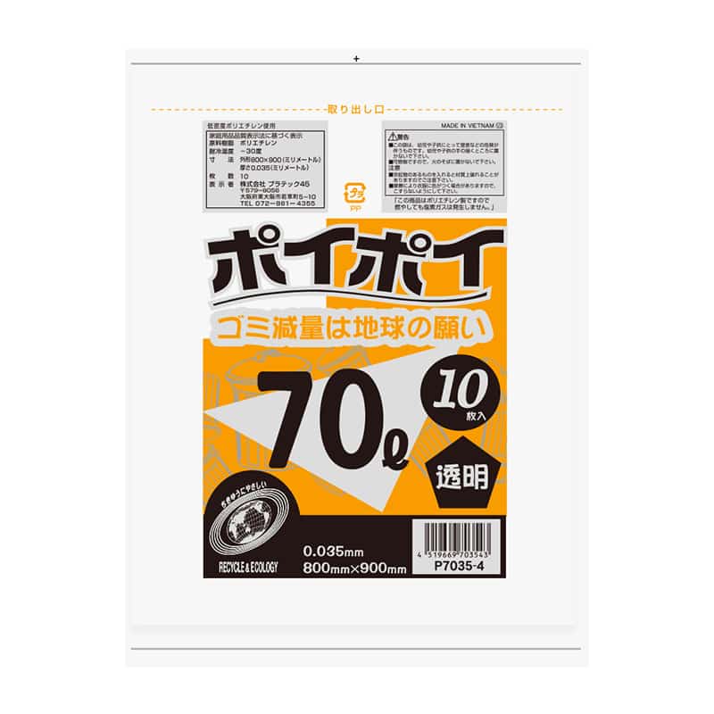 プラテック45 ゴミ袋 ポイポイ 透明 0.035mm 70L 10枚入 P7035-4 1束(ご注文単位40束)【直送品】