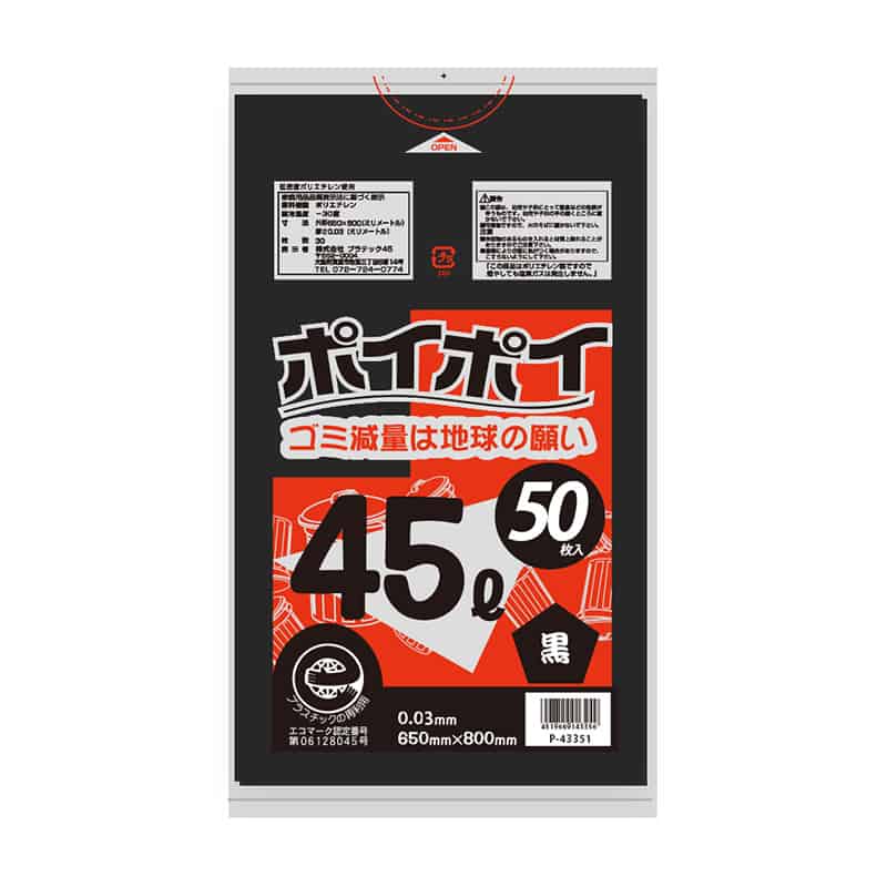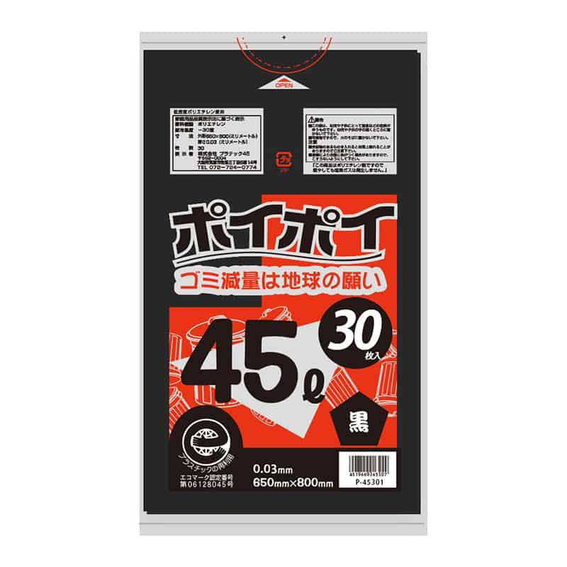 プラテック45 ゴミ袋 ポイポイ 黒 0.03mm 45L 30枚入 P-45301 1束(ご注文単位20束)【直送品】