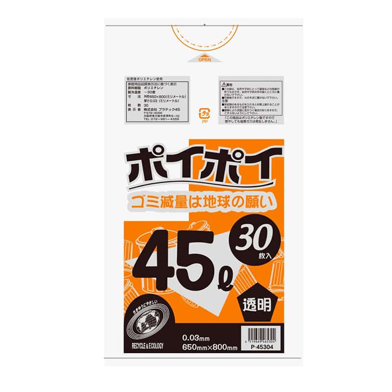 プラテック45 ゴミ袋 ポイポイ 透明 0.03mm 45L 30枚入 P-45304 1束(ご注文単位20束)【直送品】