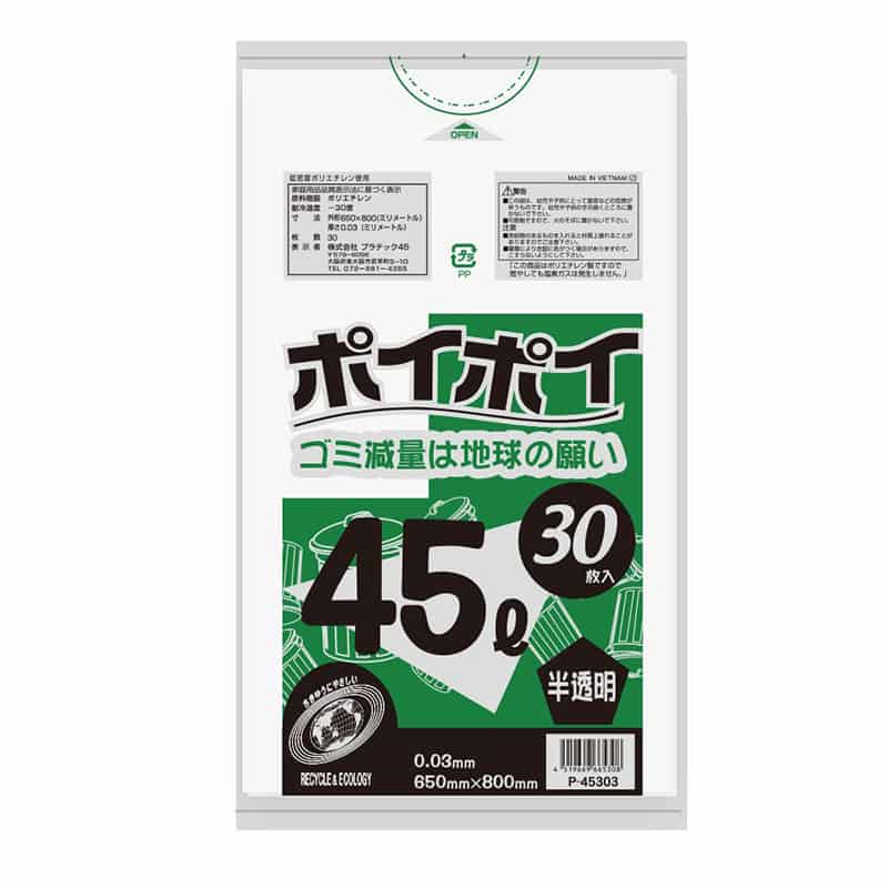 プラテック45 ゴミ袋 ポイポイ 半透明 0.03mm 45L 30枚入 P-45303 1束(ご注文単位20束)【直送品】