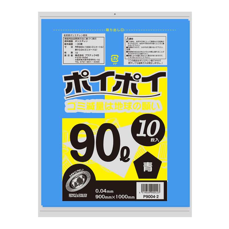 プラテック45 ゴミ袋 ポイポイ 青 0.04mm 90L 10枚入 P9004-2 1束(ご注文単位30束)【直送品】
