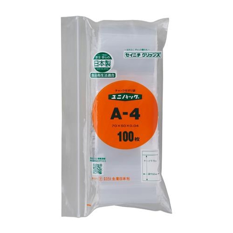 生産日本社 セイニチ チャック付きポリ袋 ユニパック A-4 100枚/袋