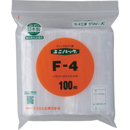 ユニパックの業務用商品をお安い価格でお求めいただける通販ページです。ユニパックは繰り返し開閉できるのが便利でおなじみのチャック付きポリエチレン袋で、セイニチ(生産日本社)の商品ブランドです。 開けやすく閉めやすく、豊富なサイズラインナップで展開があるので、文房具や衣料品、医薬品や食品などアイデア次第で様々なシーンに合わせてご使用いただけます。スタンダードな0.04mmと、重量物にも適した0.08mmの2タイプの厚みがあります。環境に配慮したバイオタイプ、記入欄があるマーク付きタイプ、スライドするだけで簡単に開け閉めができる便利なスライダー付タイプなど、豊富な種類から用途に合わせて選んでいただけます。