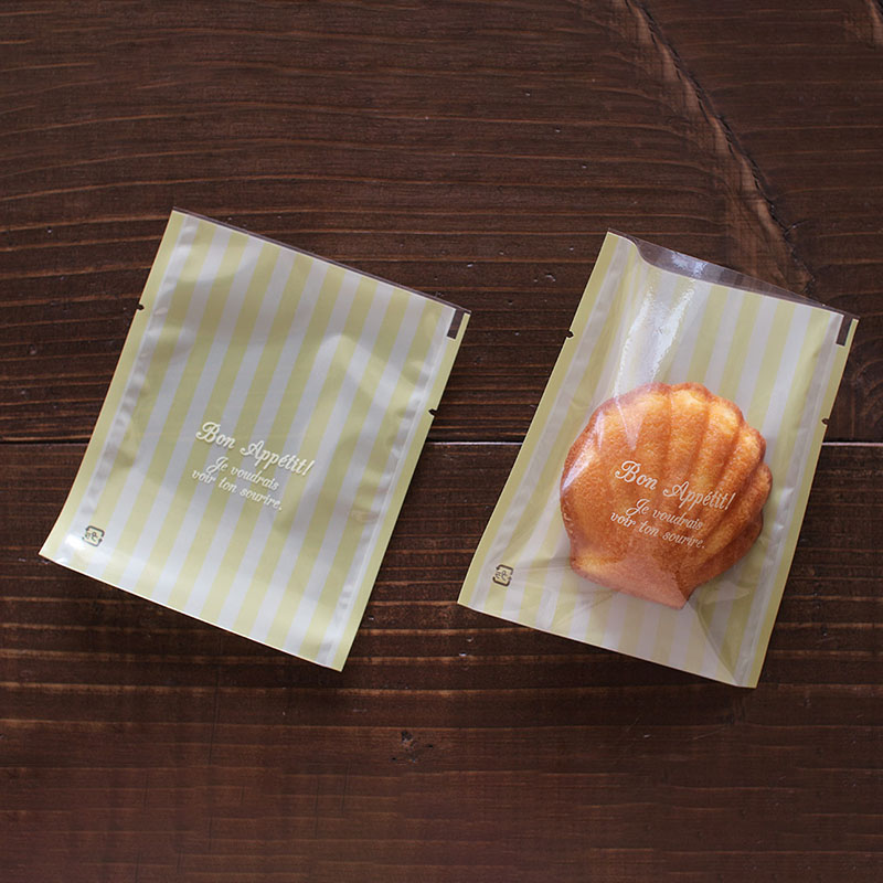 マドレーヌ、フィナンシェ、パウンドケーキなど焼菓子のパッケージにどうぞ。脱酸素剤対応袋