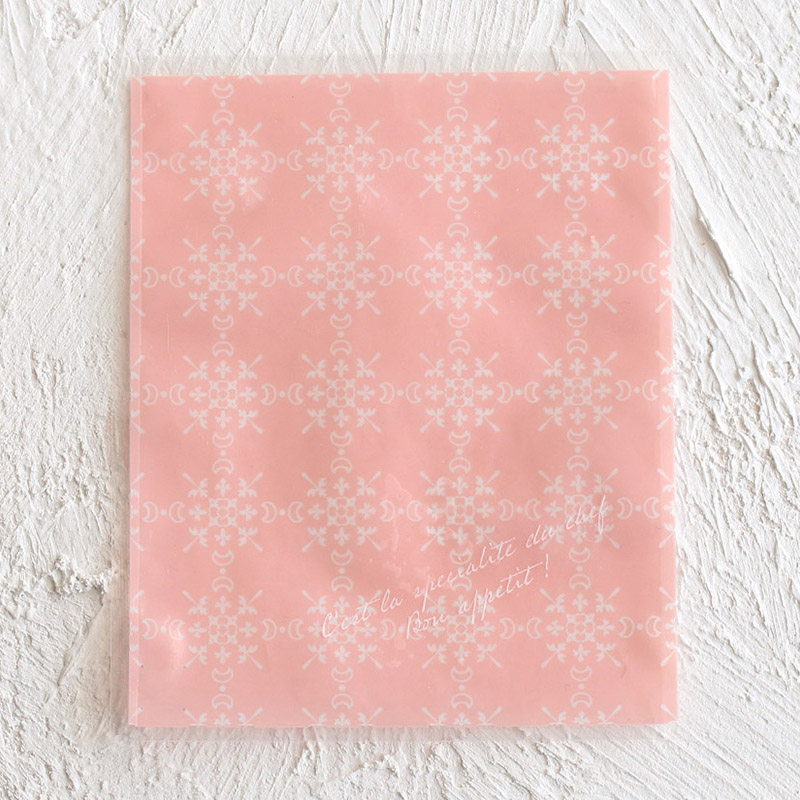 花柄と白文字のメッセージが上品な雰囲気のガス袋です。優しい色合いがいつものお菓子をおいしく見せてくれます。袋に入れるだけですてきなラッピングの完成。脱酸素剤対応です。●入数:100枚