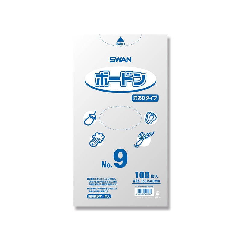SWAN ポリ袋 ボードンパック 穴ありタイプ 厚み0.02mm No.9(9号) 100枚/袋