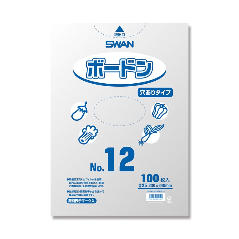 SWAN ポリ袋 ボードンパック 穴ありタイプ 厚み0.02mm No.12(12号) 100枚/袋