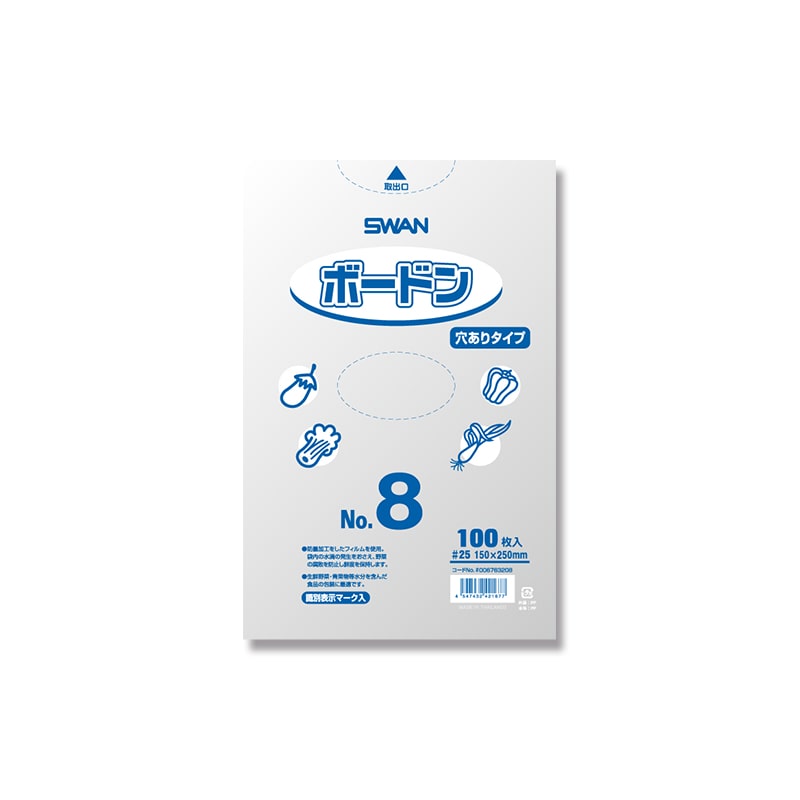SWAN ポリ袋 ボードンパック 穴ありタイプ 厚み0.02mm No.8(8号) 100枚/袋