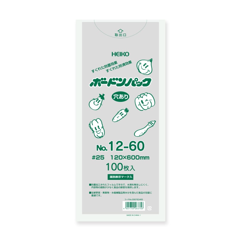 HEIKO ポリ袋 ボードンパック 穴ありタイプ 厚み0.025mm No.12-60 100枚/袋