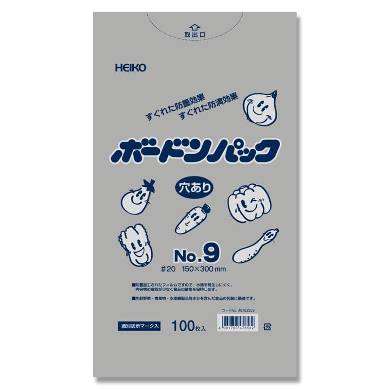 HEIKO ポリ袋 ボードンパック 穴ありタイプ 厚み0.02mm No.9-90 100枚/袋