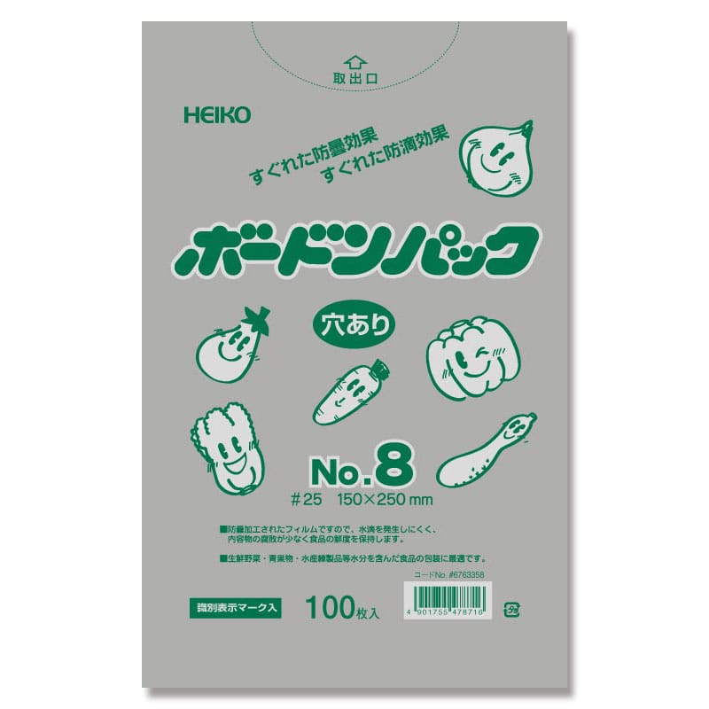 HEIKO ポリ袋 ボードンパック 穴ありタイプ 厚み0.02mm No.8 100枚/袋