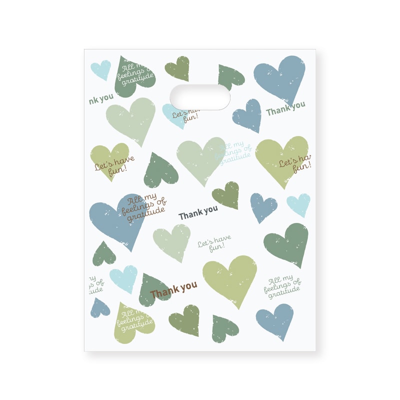 すこし大人っぽいスモーキーカラーの手提げ袋です。底マチ付きなので厚みのあるプレゼントにもおすすめです。●両面印刷 ●表裏同柄 ●入数:50枚