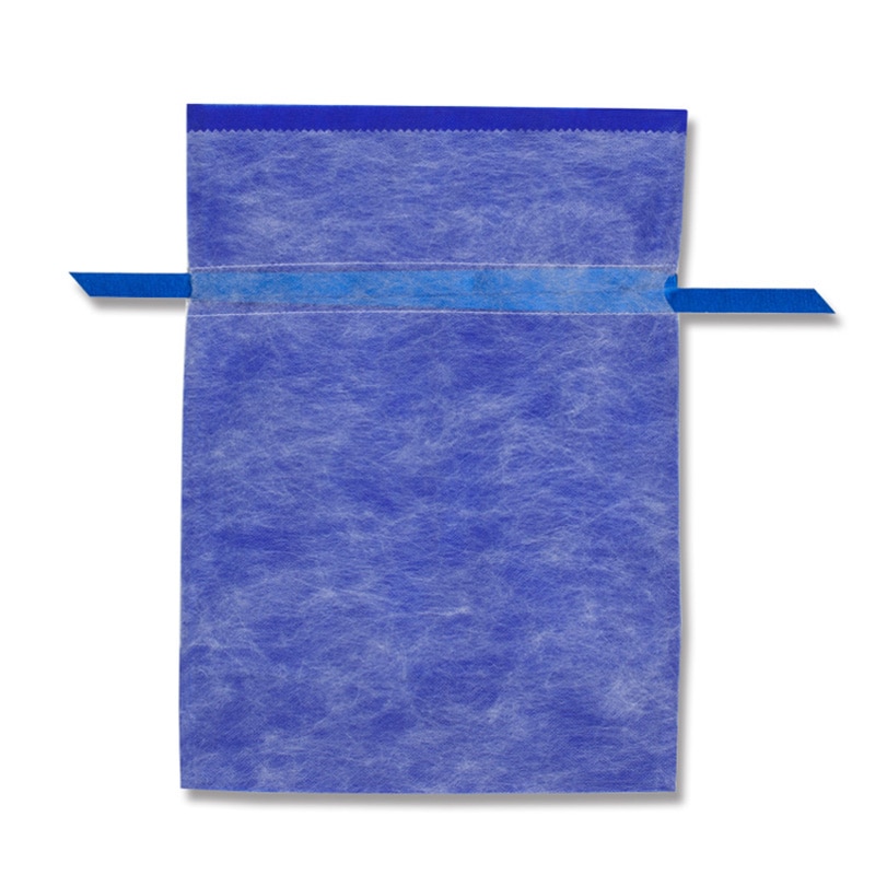 不織布を2層に重ねたギフト巾着袋です。両脇のリボンを引っ張って結ぶだけの簡単ラッピング。ベースのネイビー色の上に薄手の白を重ねることで、やさしく上品なイメージのギフトに仕上がります。底にマチがあって広がるので、見た目よりも容量があります。●入数:10枚