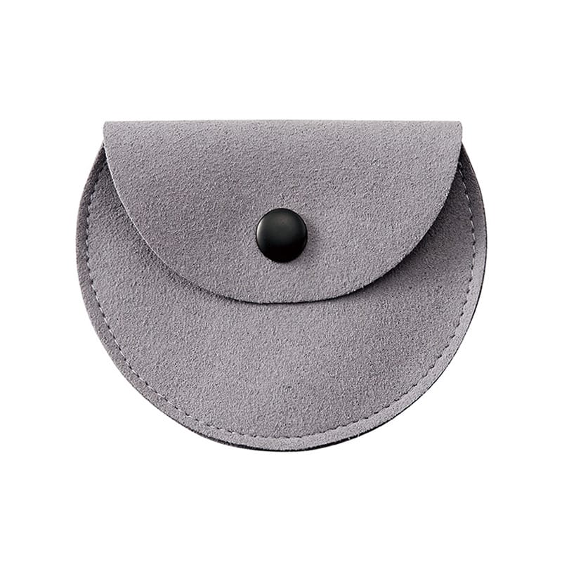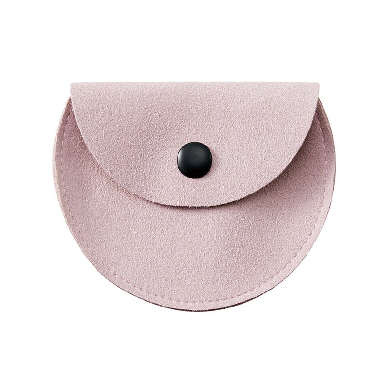 ジュエリーを保護する、人工スエードを使用した丸みのあるきんちゃく型ポーチです。