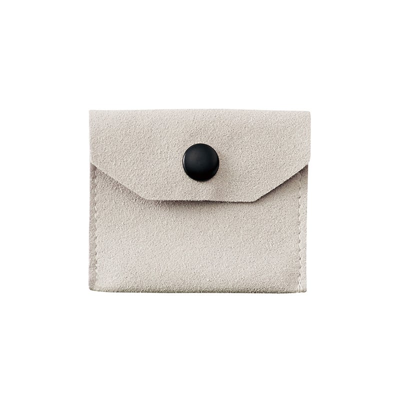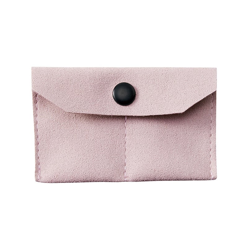 上品な質感のスエード調生地を使用したポーチです。ホックボタン付きなので持ち運びにも便利です。アフターユーズとしてもご使用いただけます。