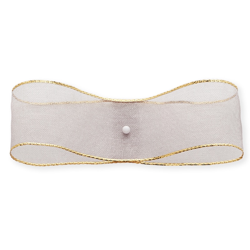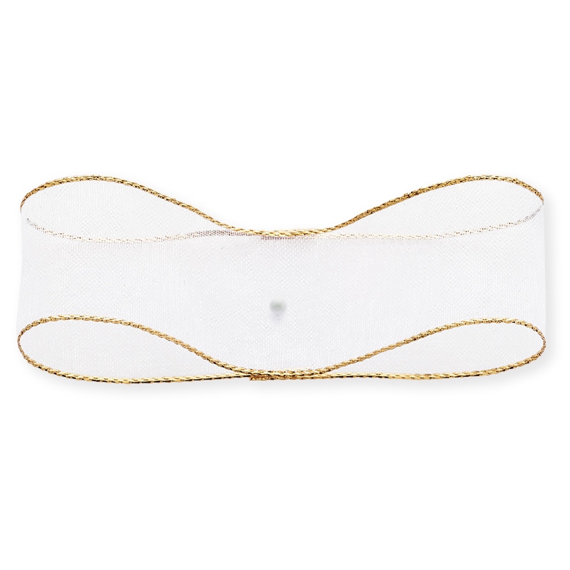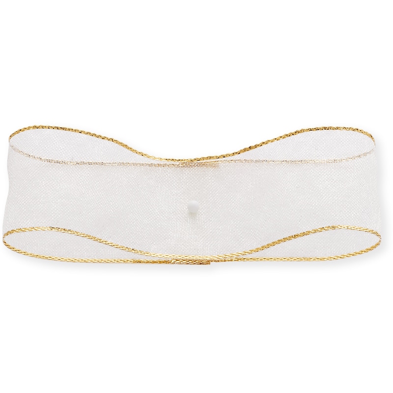 ※商品には製造工程上、やむを得ずつなぎ(まれにリボンが途中で切れ、その上から新たに巻かれているリボン)が入る場合や、生産ロット違いによる巾及び色に多少の誤差が生じる事がございます。ご理解の程宜しくお願い致します。●ゴールドのエッジが特徴の、ソフトな風合いのオーガンジーリボンです。