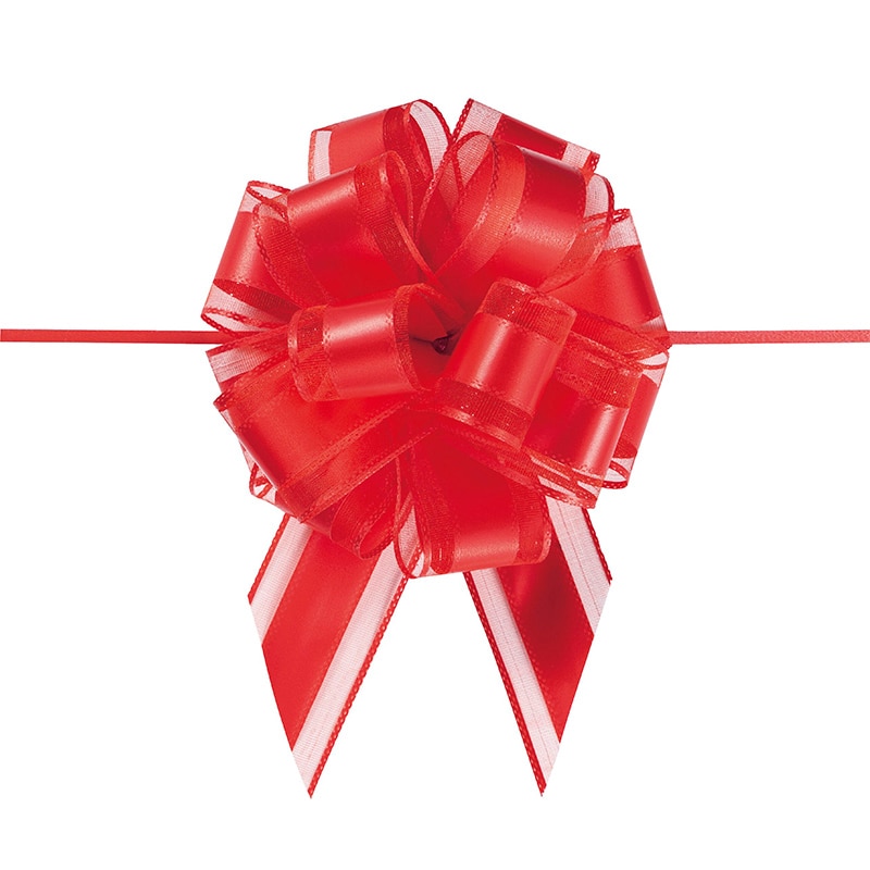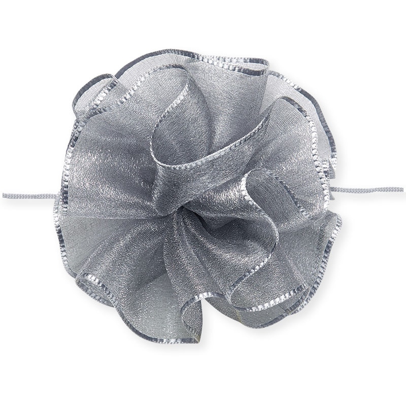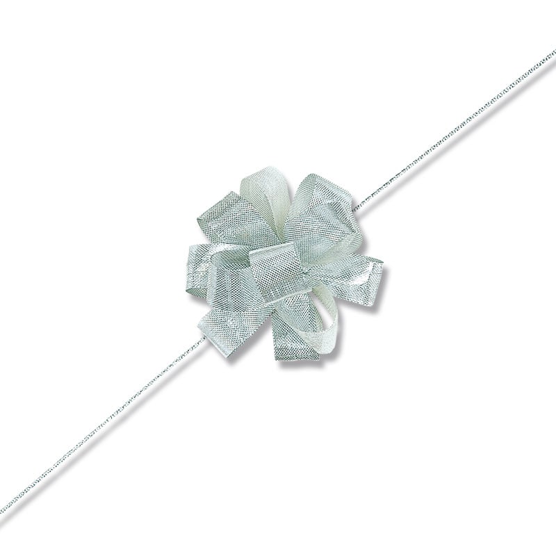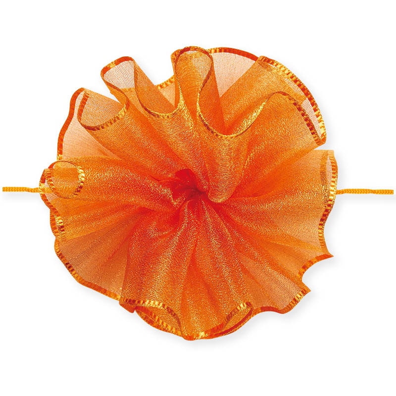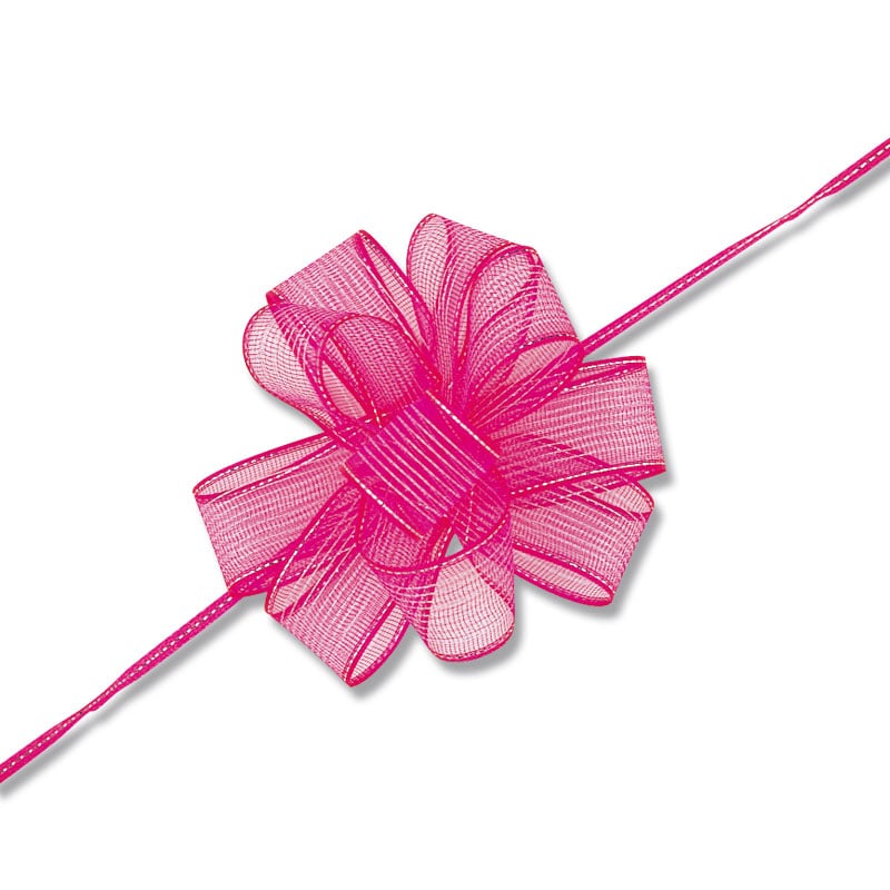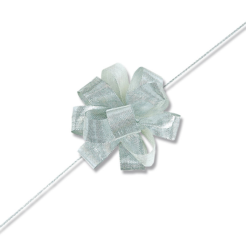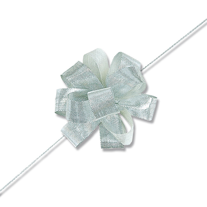 オーガンジー素材の柔らかいワンタッチリボンです。中心のヒモを引くと、ワンタッチで花ができあがります。●仕上がり径:約10cm