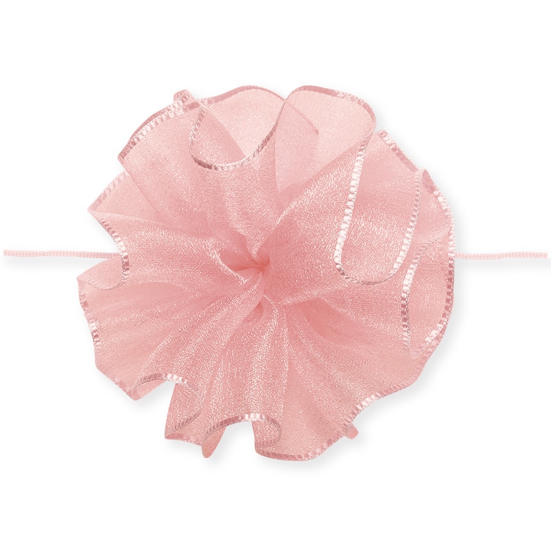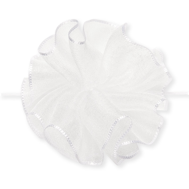 オーガンジー素材の柔らかいワンタッチリボンです。中心のヒモを引くと、ワンタッチで花ができあがります。●仕上がり径:約6cm