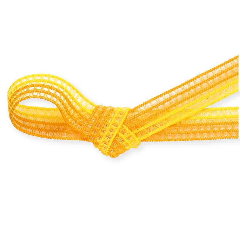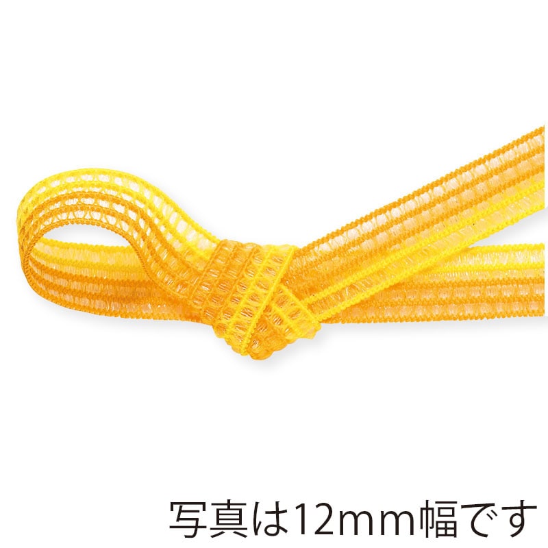 レース風の編み目が軽やかなイメージのラッピング用ゴムです。約2倍まで伸びます。