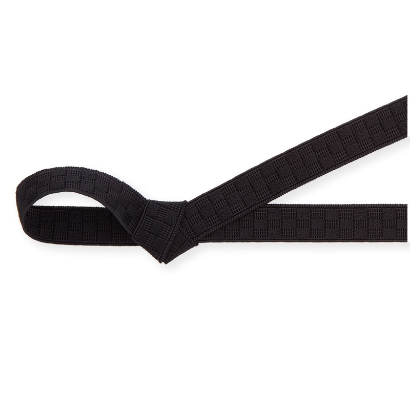 シックな色合いがおしゃれな市松柄のゴムです。約1.5~2倍まで伸びます。
