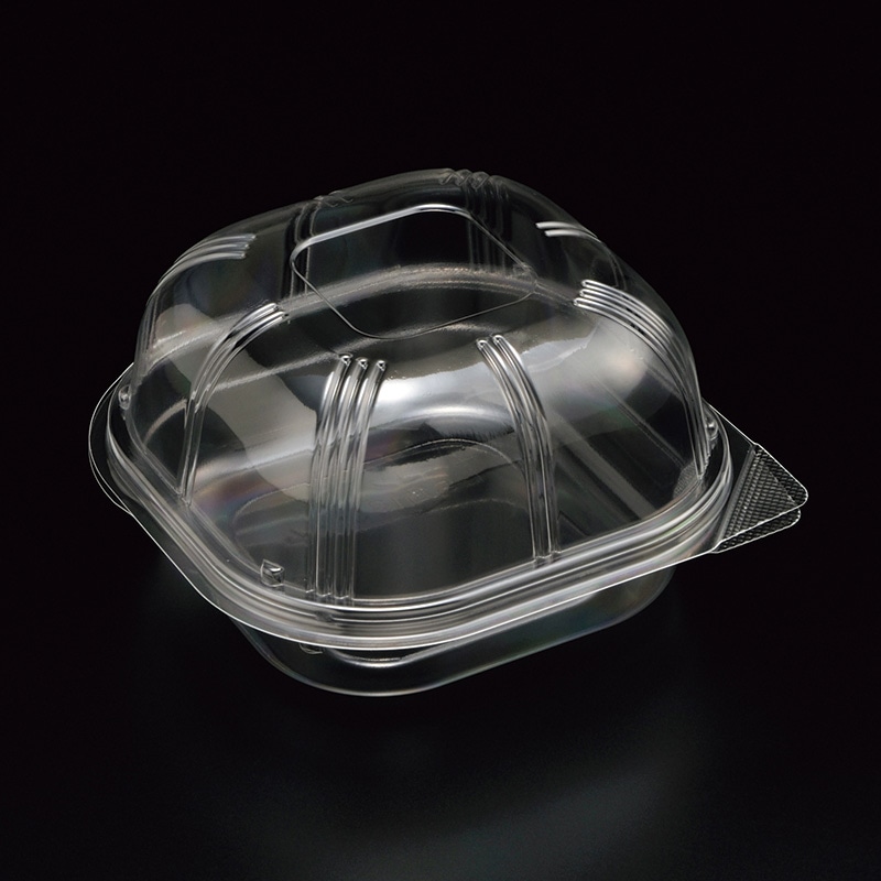 ハンバーガーやケーキなど高さのある商品に最適な容器です。様々な用途に使用できます。本体・フタ一体成型品です。●電子レンジ使用不可●オーブン使用不可●耐油性:なし●耐熱温度:80℃●入数:100枚
