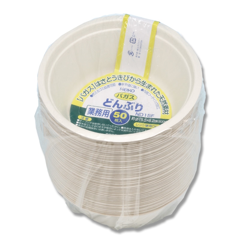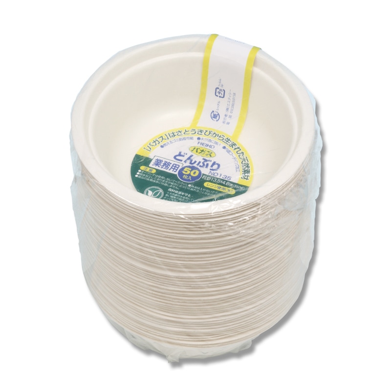 サトウキビの搾りカスから精製された非木材系の天然パルプ「バガス」を使用した環境配慮型のペーパーウェアです。燃えるゴミとして処理できます。たっぷりサイズな大きめのどんぶりタイプ。水や油に強く、イベントでの使用や、アウトドア・ホームパーティなどで活躍します。食品衛生法規格基準適合商品です。※食品の長期保存には適しません。※熱湯は入れないでください。●電子レンジ使用可●オーブン使用不可●耐熱温度:100℃●容量:850ml●入数:50枚