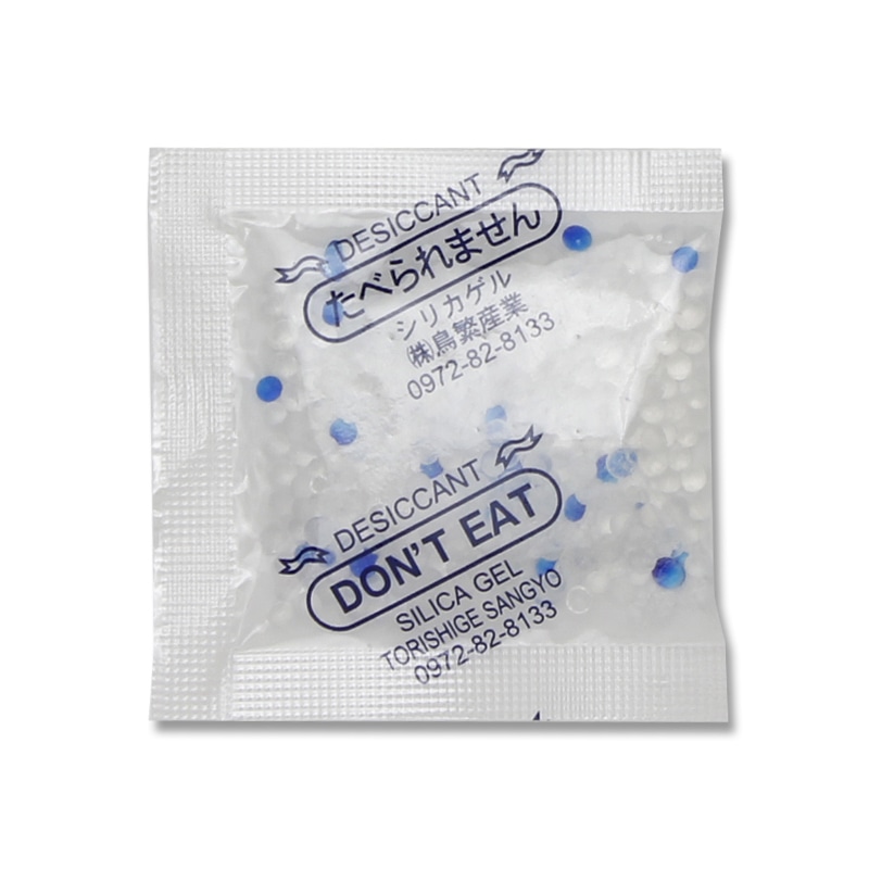 優れた防湿包装、品質保持の必需品です。強力な乾燥剤として、食品全般、薬品の乾燥保管など幅広く使われています。中が見えて、通気性がゆるやかなPETフィルムタイプ。湿度検知剤としての青色シリカゲルは、吸湿とともにピンク色に変わります。おかき、クッキー、飴などの食品や、電子部品、光学機器類、精密機器などの防湿、防錆対策、医薬品の乾燥保管などにも使用されます。食品の重さに対して、1/20~1/25のものをお選びください。●使用可能な包装資材:OPP/CPP、バリアOP/CP、バリアPET/CP、PET/AL/PEなど●入数:100個