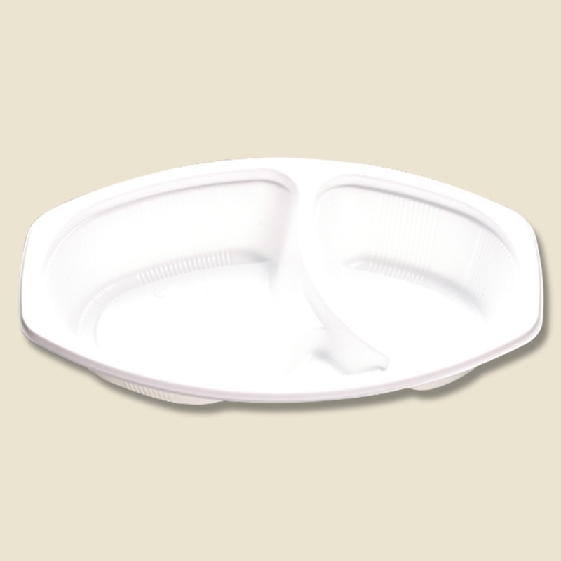ごはん部分とルー部分が仕切れたタイプの便利な丸型テイクアウト容器です。内嵌合蓋「シーピー化成 カレー容器 BFカレー内8 嵌合蓋U字穴 50枚」は別売です。●電子レンジ使用可●オーブン使用不可●耐油性:あり●耐熱温度:105℃●ごはんの容量:約310g/ルーの容量:約260cc●入数:50枚