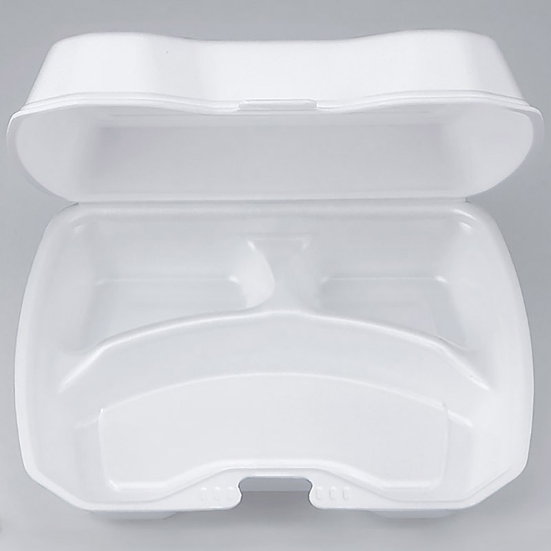 蓋がワンタッチで閉まる発泡タイプのランチBOX!ケータリングやランチボックスにおすすめの食品容器です。●電子レンジ使用不可●オーブン使用不可●耐油性:なし●耐熱温度:85℃●ごはんの容量:約200g●入数:50枚