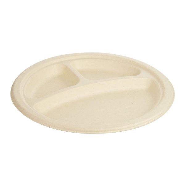 ストリックスデザイン 未晒しバガスモールドプレート 仕切り付 23.5cm 50枚 SD-719 1袋(ご注文単位24袋)【直送品】