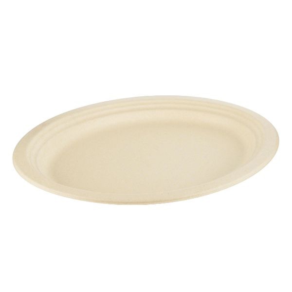 竹とバガス(サトウキビの搾りかす)の混合素材からできた、植物由来の業務用・使い捨てプレート容器。しっかりとした厚みがあるため、アウトドアやパーティーなどさまざまなシーンに対応します。※内側にコーティング加工がされていない為、米飯など粘り気のある内容物を直接入れると、材質の特性により食品に素材が付着する場合がございます。●電子レンジ使用可●耐油性:あり●耐水性:あり●入数:50枚
