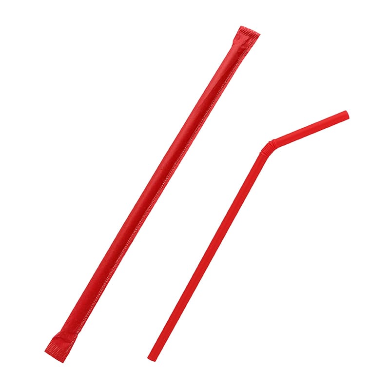 カラー紙袋入りのカラーストローです。自由に曲がるフレキシブルタイプで、飲食店、イベント、オフィス備品としてもおすすめです。ストロー本体と紙個包装袋は同色です。