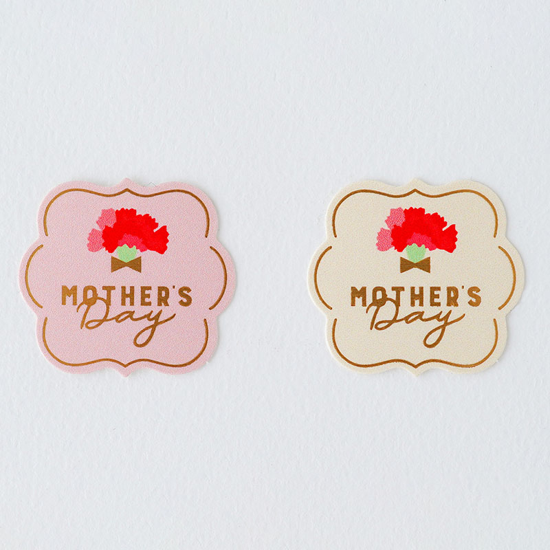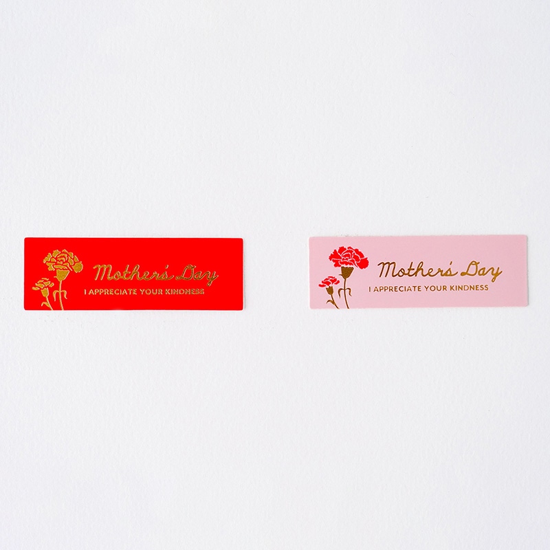 母の日向けのケーキピックです。赤とピンクのシンプルラベル柄アソートです。●1シートに10片付