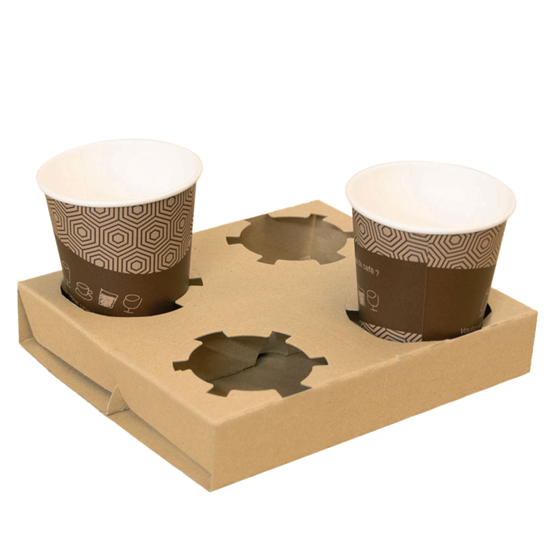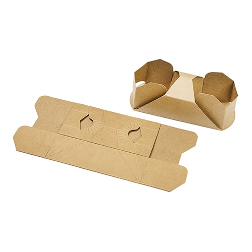 紙製のカップホルダーです。穴をあけずに食品用トレーとしても使用できます。