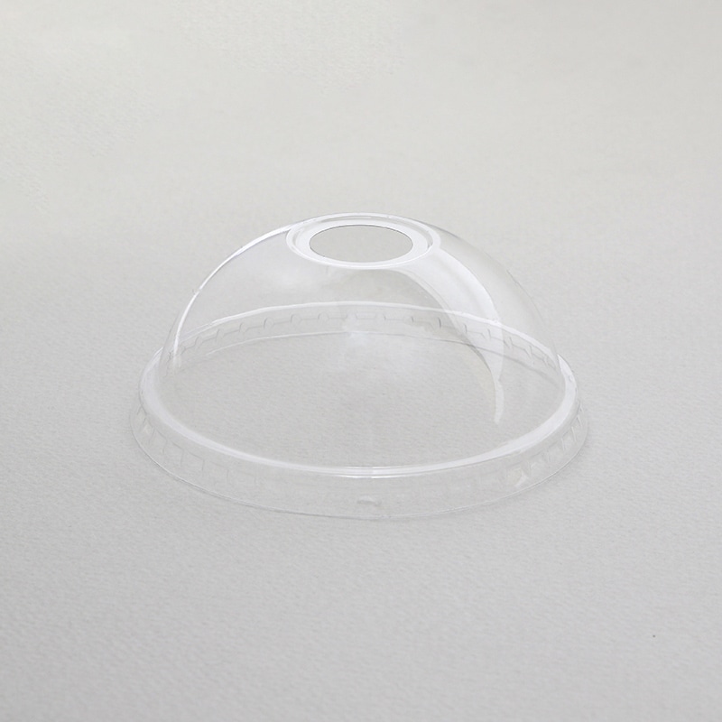 「HEIKO プラスチックカップ 12オンス 口径95mm 透明」/「HEIKO プラスチックカップ 14オンス 口径95mm 透明」/「HEIKO プラスチックカップ 18オンス 口径95mm 透明」の透明ドーム型蓋です。天面に丸型のストロー穴付き。食品衛生法規格基準適合商品です。※穴はアルファベットの「C」の文字のように、完全にくりぬかれた状態ではありません。●入数:100個