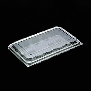 折り蓋式の透明容器です。外嵌合タイプ。●電子レンジ使用不可●耐熱温度:80℃●入数:50枚